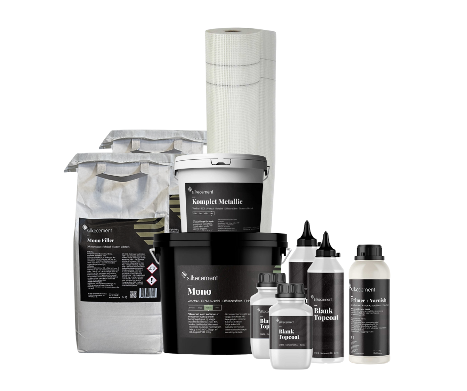 Silkecement Mono er en serie af spartelmasser der kan bruges på stort set alle overflader. Silkecement Mono er en Microcement og efterlader en flot og helt unik overflade.