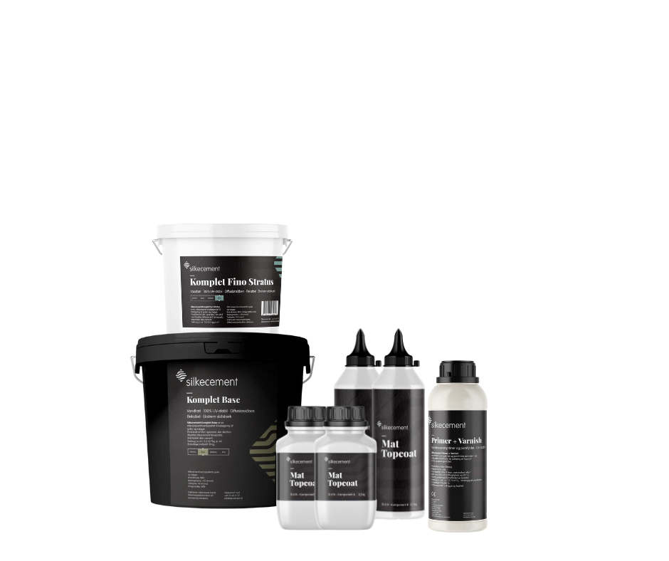 Med vores Silkecement Komplet pakker kan du udføre flotte overflader på gulve, vægge og i vådrum.